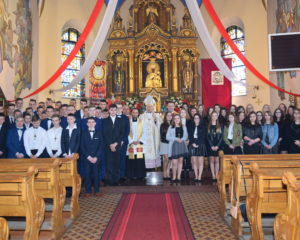 W Niedzielę Miłosierdzia Bożego, podczas uroczystej sumy o godzinie 11.30, młodzież drugich i trzecich klas gimnazjalnych, przyjęła Sakrament Bierzmowania z rąk J.E.Ks. Bpa Mariana Rojka